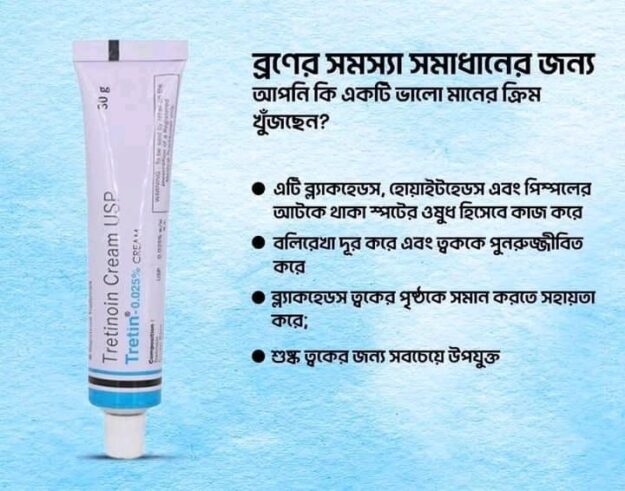 ✅ এই ক্রিমটিতে রয়েছে 0.025% ট্রেটিন যা Acne কমাতে সাহায্য করে।
