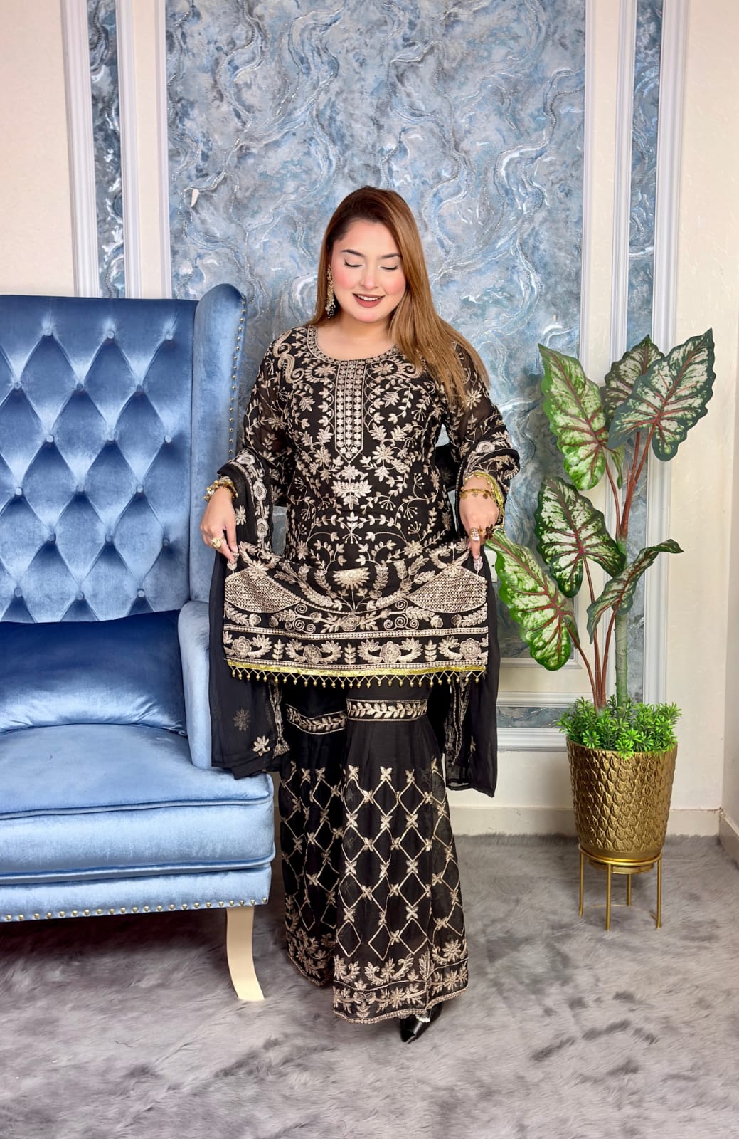 👉প্যান্ট : ইন্ডিয়ান লাক্সারি জর্জেট।